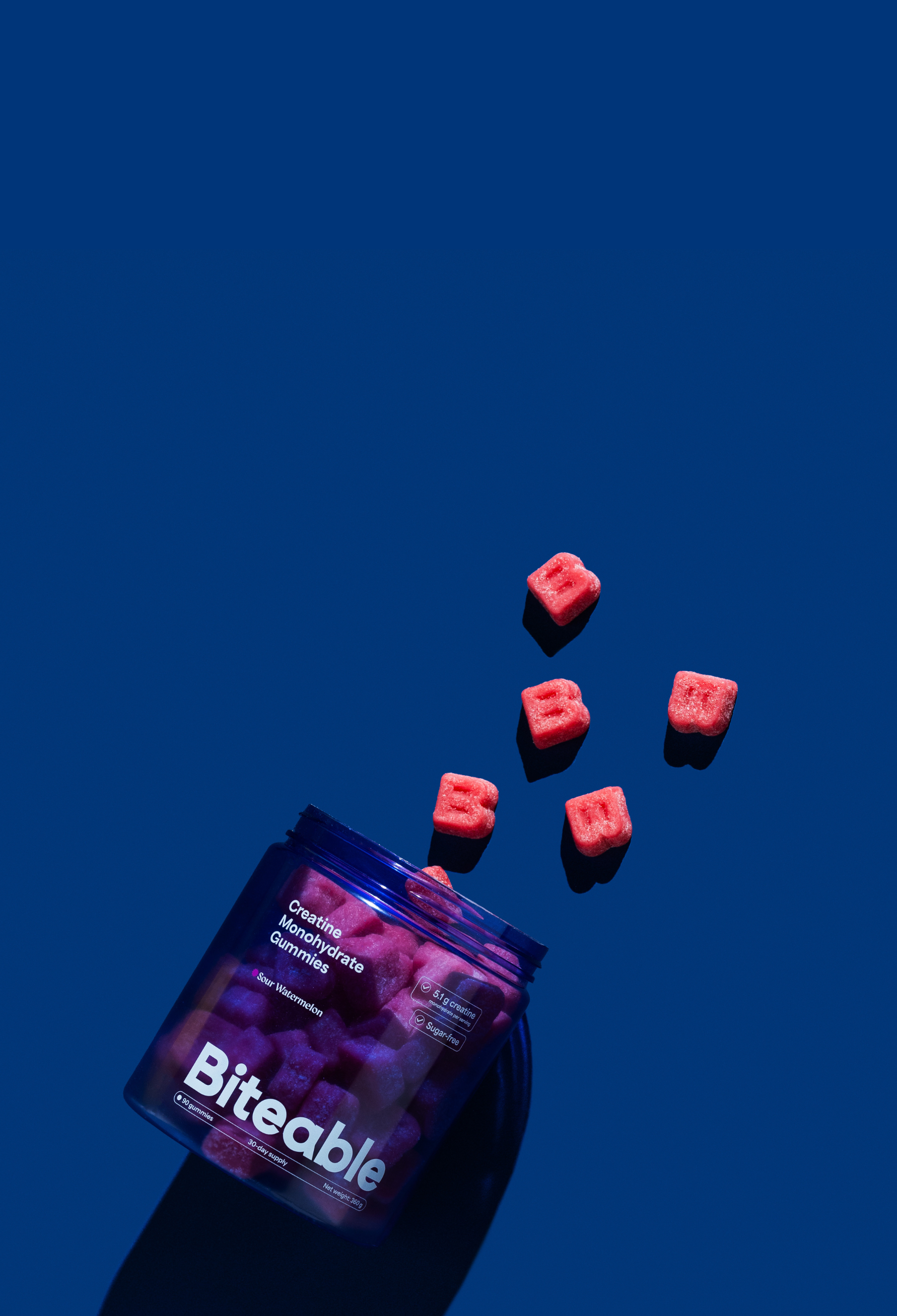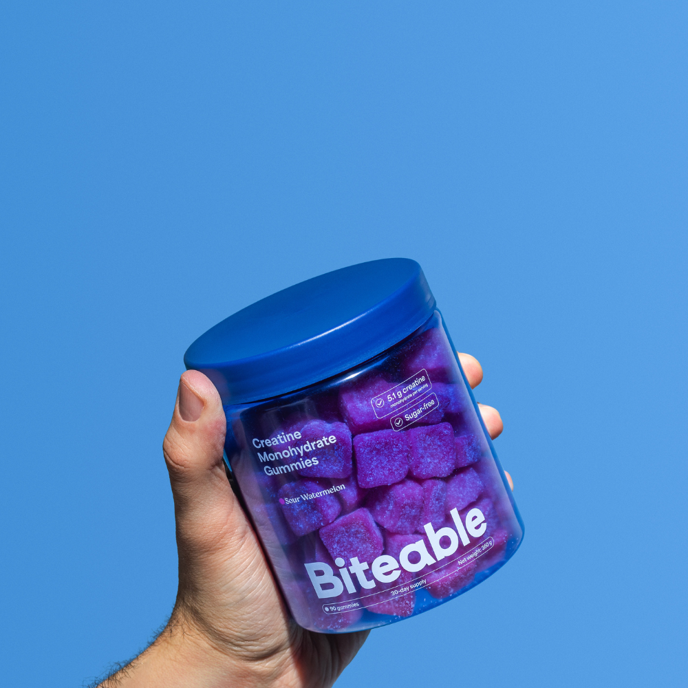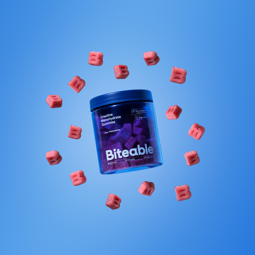 Biteable combines both. Each serving delivers 5.1 g of creatine monohydrate, equivalent to a full scoop of traditional creatine powder. Every batch independently third-party tested, in a format you'll actually take every day.